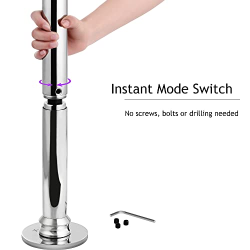 TWEE MODI: ROTEEREND EN STATISCH: De dansstang is uitgerust met robuuste kogellagers, waardoor de beweging kan worden gedraaid. Om tussen de statische en de draaibare functie te schakelen, draai je de onderkant van de steunvoet met een inbussleutel. Ter informatie: Zorg ervoor dat deze verticaal tussen de vloer en het plafond staat.